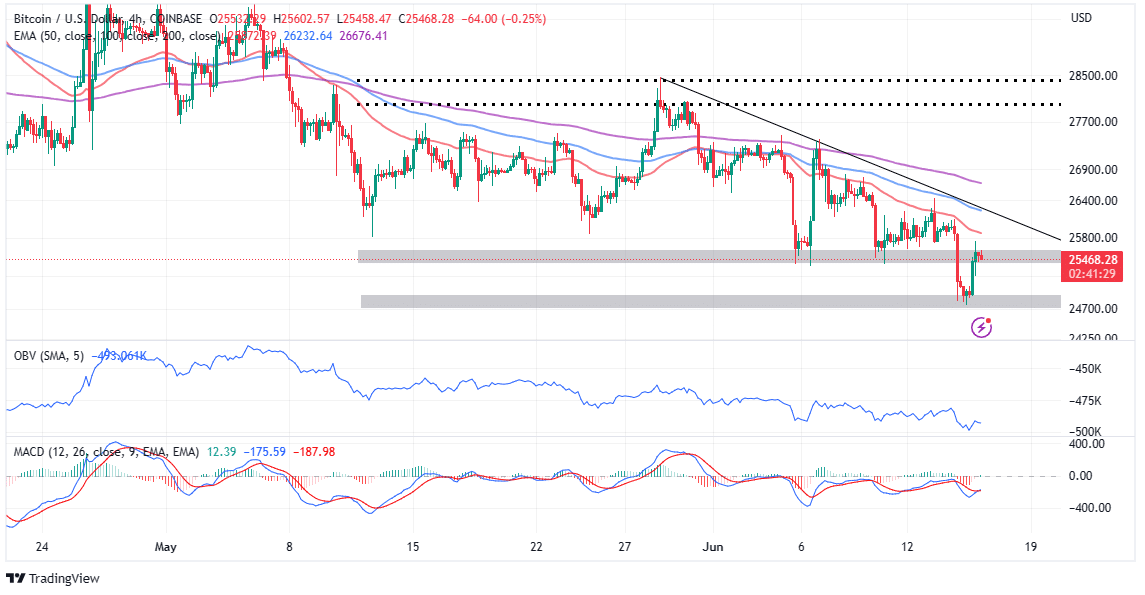 Bitcoin price, which felt the pinch after the Fed announcement, has bounced from support at $24,700 and is trading at $25,500 on Friday. Live price data tracked by CoinGape, shows a 2% bullish pump in the last 24 hours.