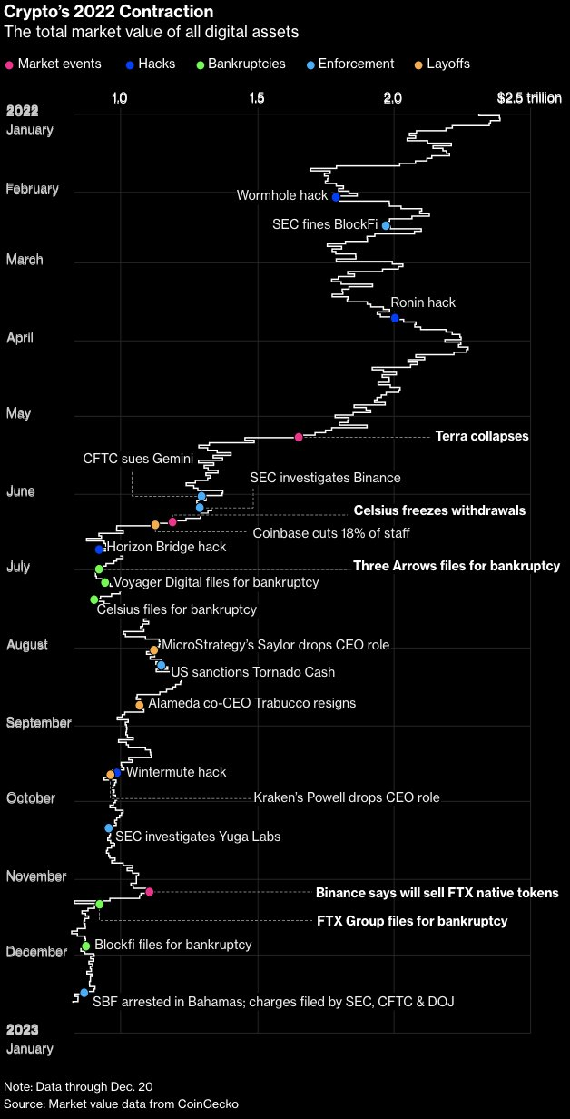 The crypto ecosystem was plagued with a series of attacks, unprecedented sanctions and bankruptcy filings, which multiplied the impact of the global recession on the market. In addition to poor price performance, some of the most prominent scars for 2022 investors include the fall of FTX, 3AC, Voyager, BlockFi and Terraform Labs, wherein investors lost access to all their funds overnight.