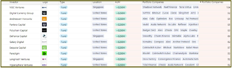 Largest crypto venture funds. Source: Dove Metrics