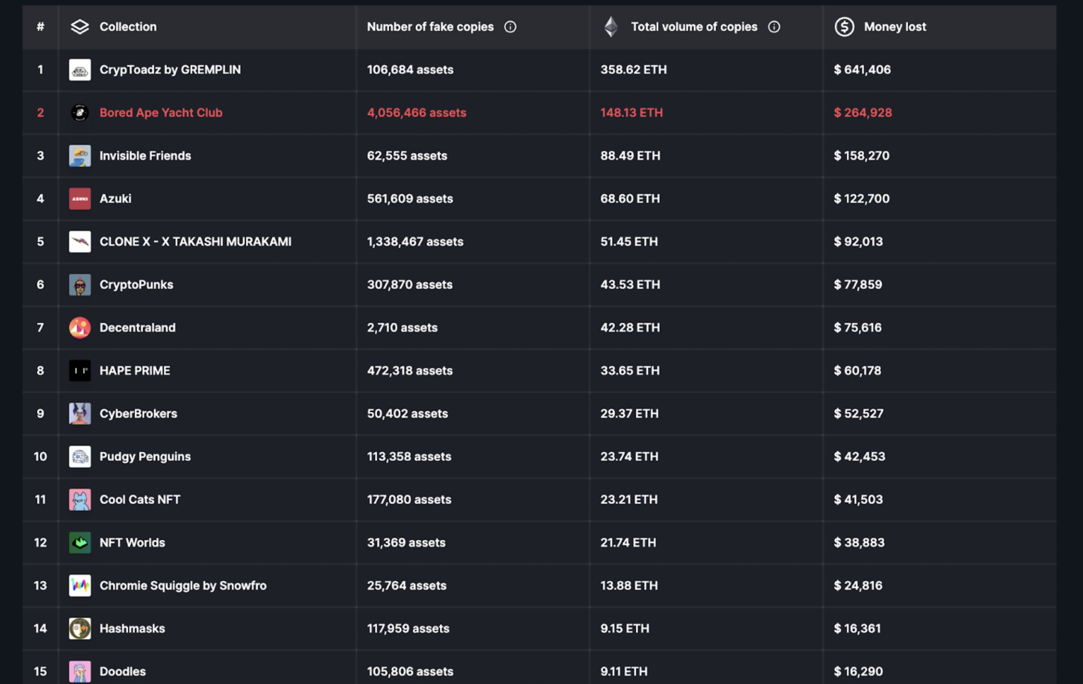 Only the top 20 most copied NFT projects account for 8 million fake copies across NFT marketplaces.