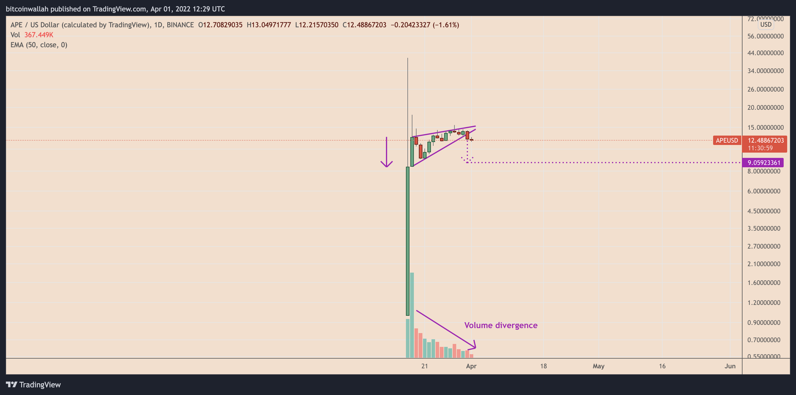 The bearish setup emerges as markets continue to look for clues about APE’s utility in the nonfungible token (NFT) and metaverse sector.
