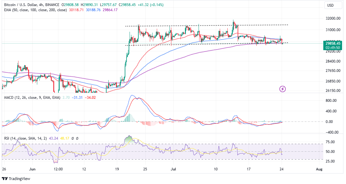 Bitcoin price continues to struggle below $30,000 with declines seemingly in the offing. The largest cryptocurrency has in the last 24 hours rolled back 0.5%, and is trading at $29,780.