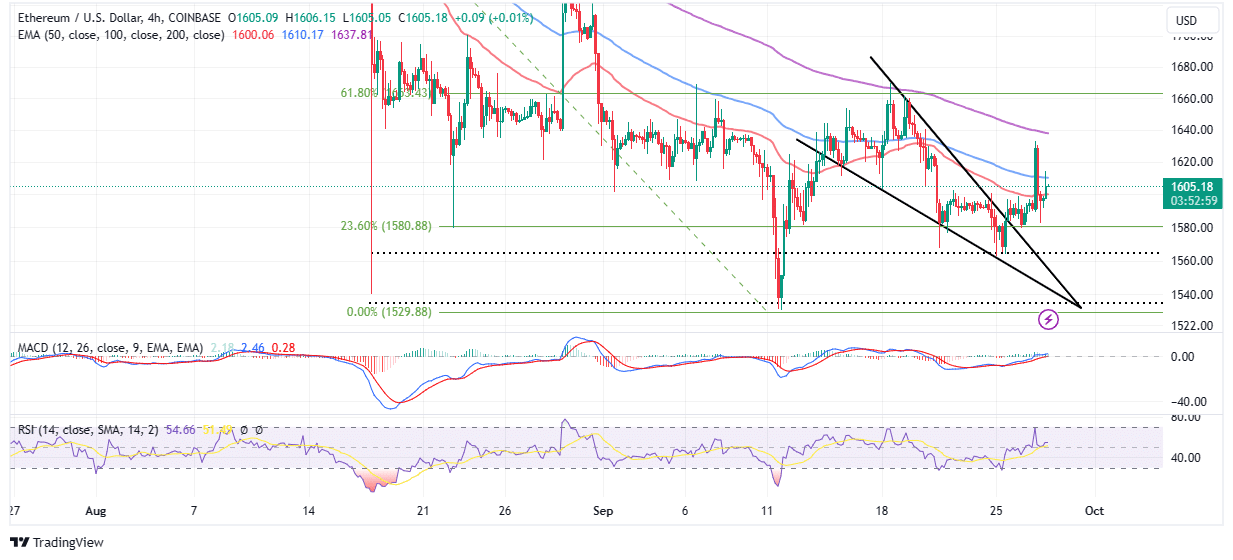 Ethereum has steadied the uptrend following the dip to $1,564 earlier this week. The formation of a short-term falling wedge, as discussed in the previous ETH price prediction boosted the bulls’ presence and confidence in the market.