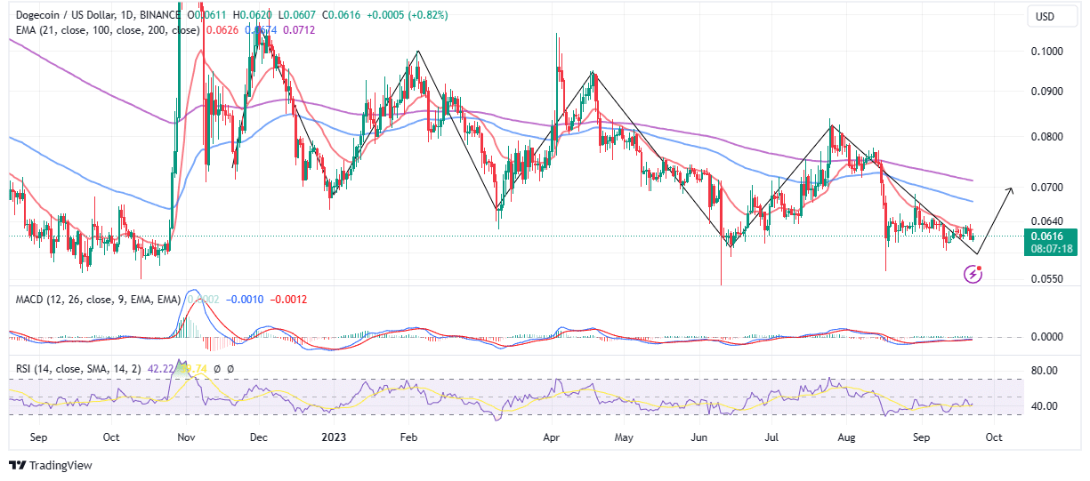 A bullish fractal is likely to play out based on the daily chart if bulls uphold support at $0.06. A careful examination of Dogecoin price performance reveals the formation of bearish and bullish fractals, hinting at the next leg up.