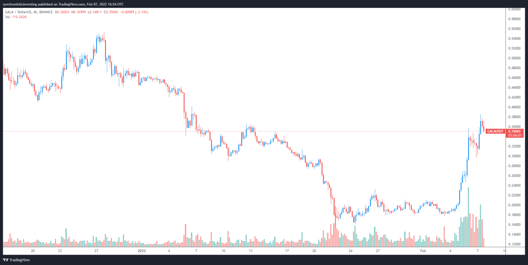 Data from Cointelegraph Markets Pro and TradingView shows that the price of GALA climbed 117% after hitting a low of $0.177 on Feb. 2 to hit a daily high of $0.384 on Feb. 7.