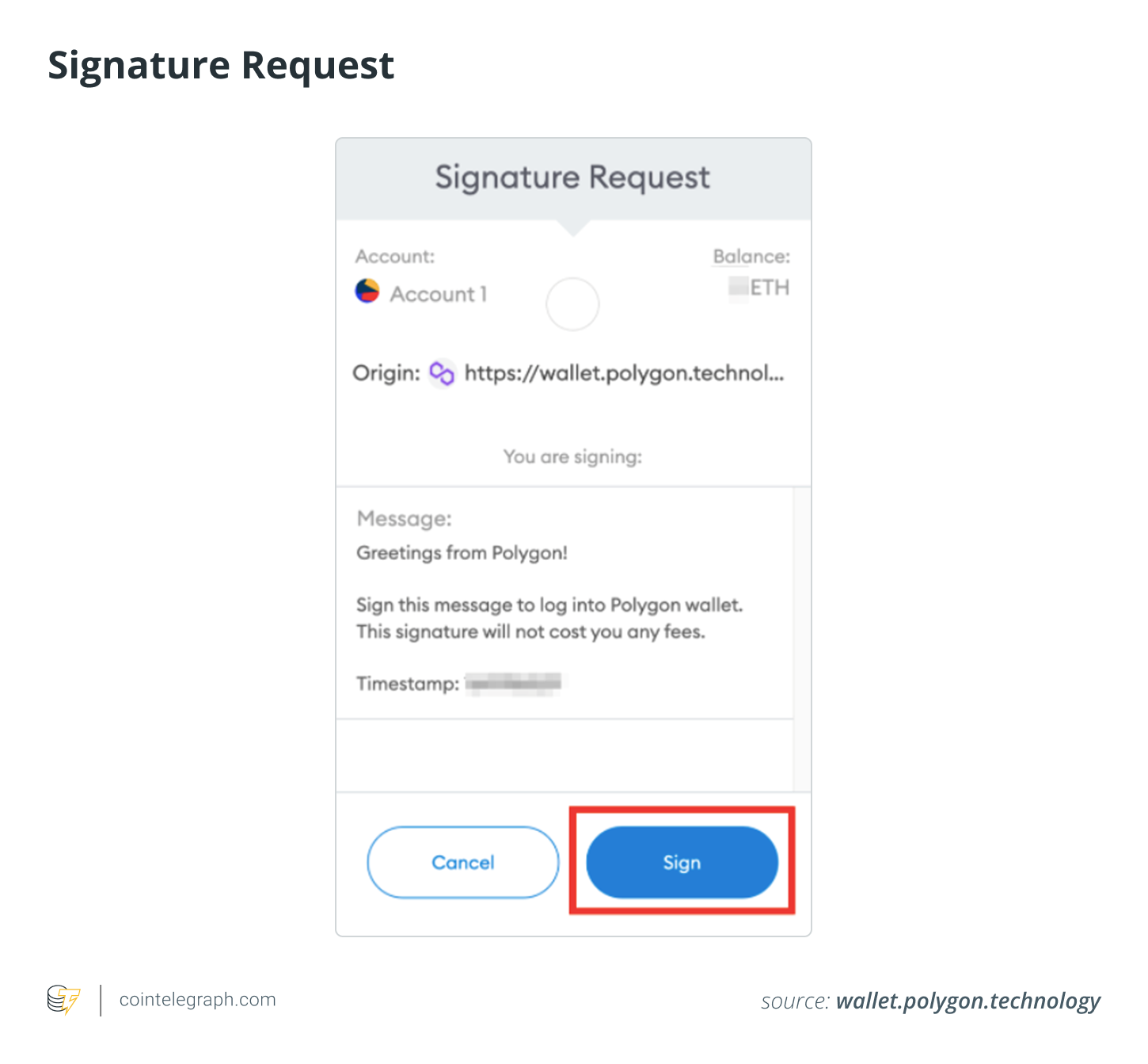 3. A digital signature is required to connect your MetaMask wallet to your Polygon wallet. Ensure the URL is correct before clicking on sign in to proceed to avoid any scamming attempt.