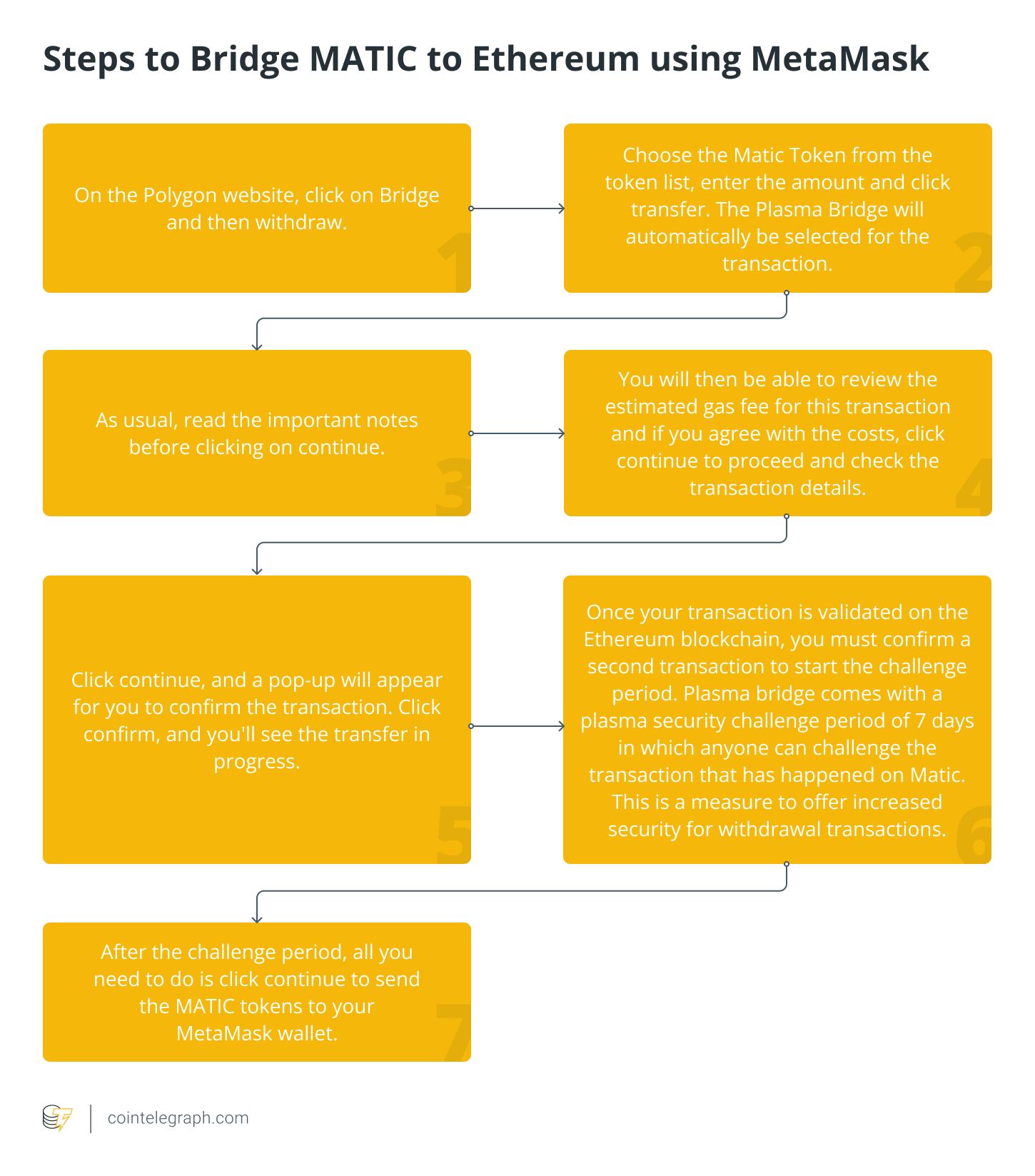 You can also use Polygon Bridge Matic to run the inverse transaction to transfer MATIC to Ethereum. Similarly, you’ll need a compatible crypto wallet such as MetaMask.
