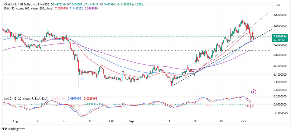 Chainlink price is on the move to trim the gains accrued following the pump from September’s lowest support at $5.8. The token native to one of crypto’s most sought after oracle live price feed platforms, climbed to highs at $8.26 late last week before bowing to the ongoing selling pressure.