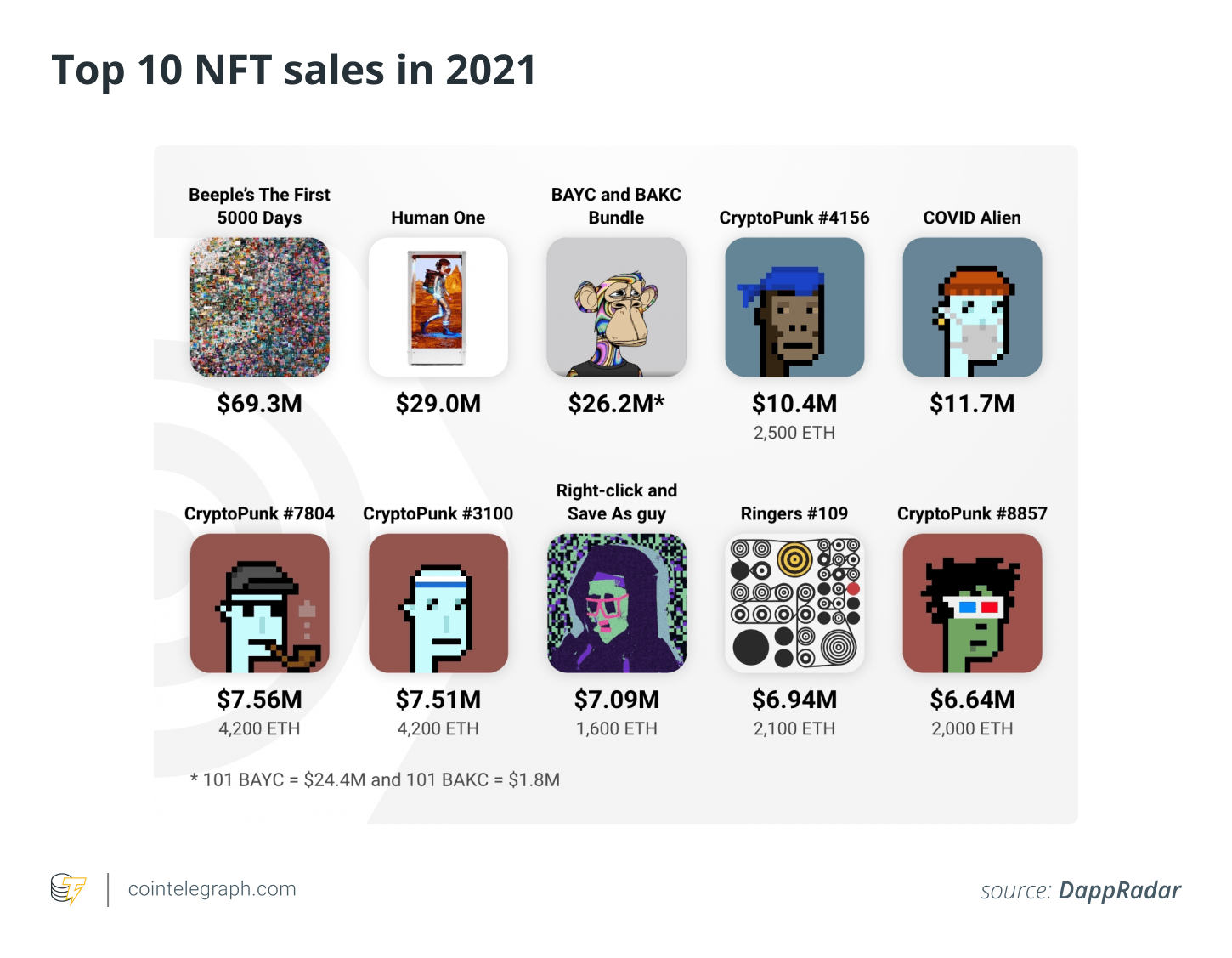 According to a report by DappRadar, the NFT market has had its best year, generating over $23 billion with the floor market capitalization of the top 100 NFT collections standing at $16.7 billion, as of Dec. 17, even before the year closed out.