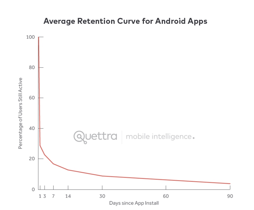 We are not very loyal to our apps. Around 77% of daily active users abandon Android apps within three days. Estimates suggest that 25% of all downloaded apps are abandoned within minutes due to poor onboarding.