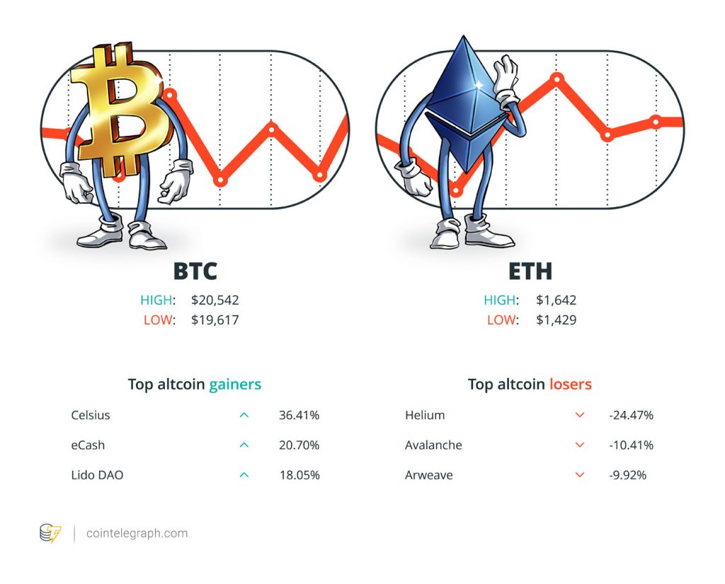 For most of this week, Bitcoin could not decide whether it wanted to stay above or below $20,000, trading north and south of the level numerous times, according to Cointelegraph’s BTC price index.