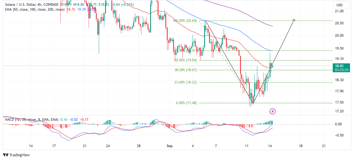 The four-hour chart shows a stronger bullish comeback, validated by a buy signal from the MACD. More traders would consider Solana a better investment if the token upholds the support at $17.5 and closes the gap to $20.