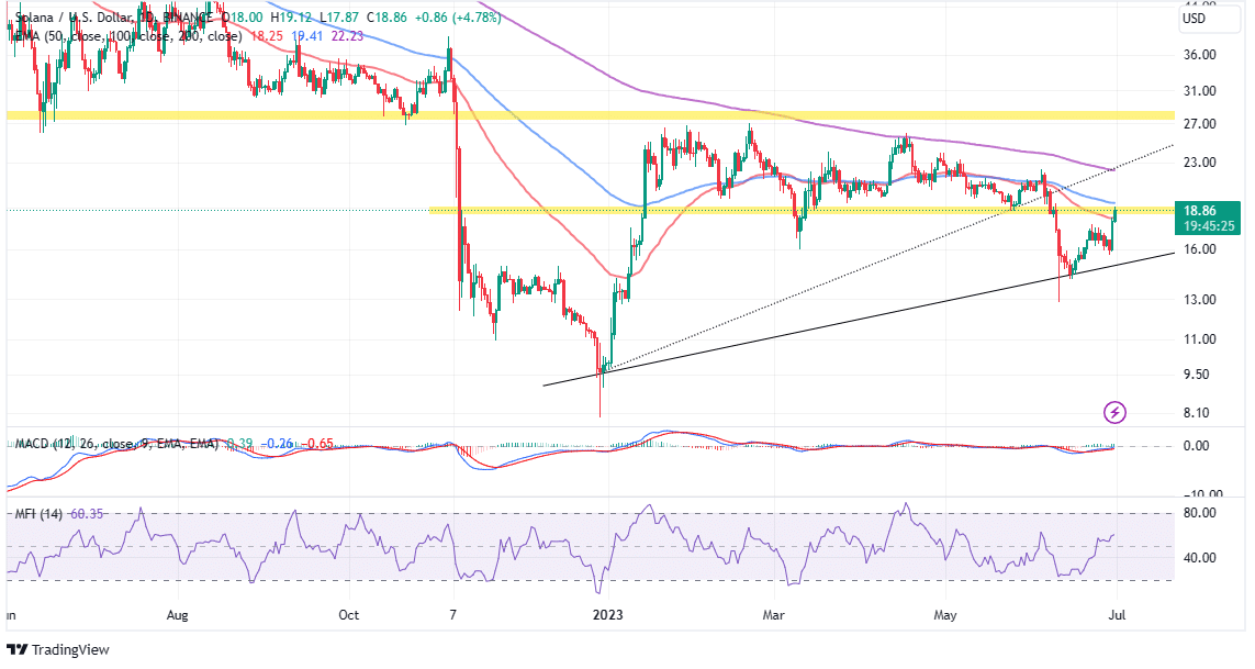 Subsequently, traders would be looking forward to Solana price weakening resistance at the 100-day EMA. Such a move would help build the momentum for SOL to close the gap to the next critical hurdle at $27.
