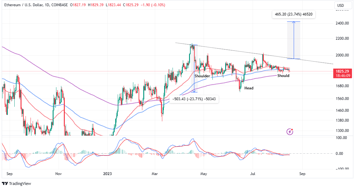 As discussed in a previous analysis, Ethereum is nurturing a potential inverse head and shoulders breakout, targeting highs around $2,424 if confirmed. However, before this breakout, bulls must strive to bring down resistance at $1,850 and $2,000 and this may involve a drop to the lower range limit around $1,600 to sweep through liquidity.