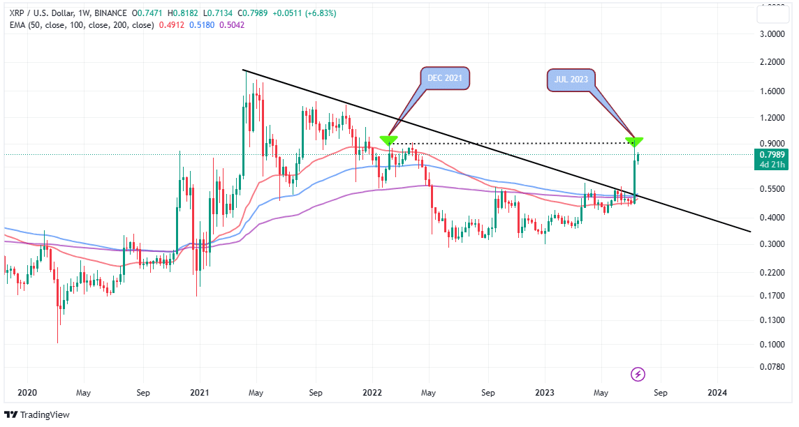 XRP price is up 70% in the last seven days to $$0.81 as the cross-border money remittance token continues to defy a market-wide slump led by prominent cryptos like Bitcoin (BTC) and Ethereum (ETH).