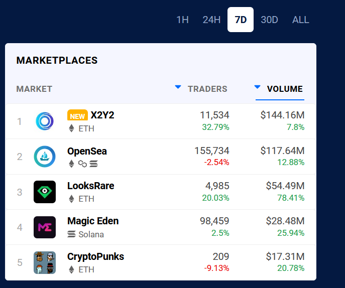 According to data from DappRadar, X2Y2 generated $144.16 million worth of NFT sales from just 11,534 traders over the past week, compared to the $117.64 million generated from 155,734 traders on OpenSea.