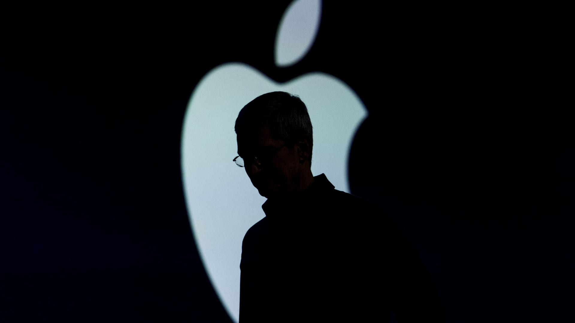 The silhouette of Tim Cook, chief executive officer of Apple, during the Apple World Wide Developers Conference (WWDC) in San Francisco.