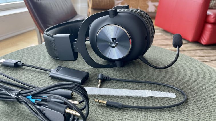 While you can use any corded headphones with the Quest 2, there are a handful of official headsets, including Logitech’s G Pro Gaming Headset. It seems sturdy and is comfortable for an over-ear pair, with memory foam earpads that passively seal out ambient noise. You get a short cord (with a Velcro strip) that’s designed for the Quest 2, along with other cord accessories that allow you to use the Quest headset with your PC and other consoles. The boom microphone is detachable.