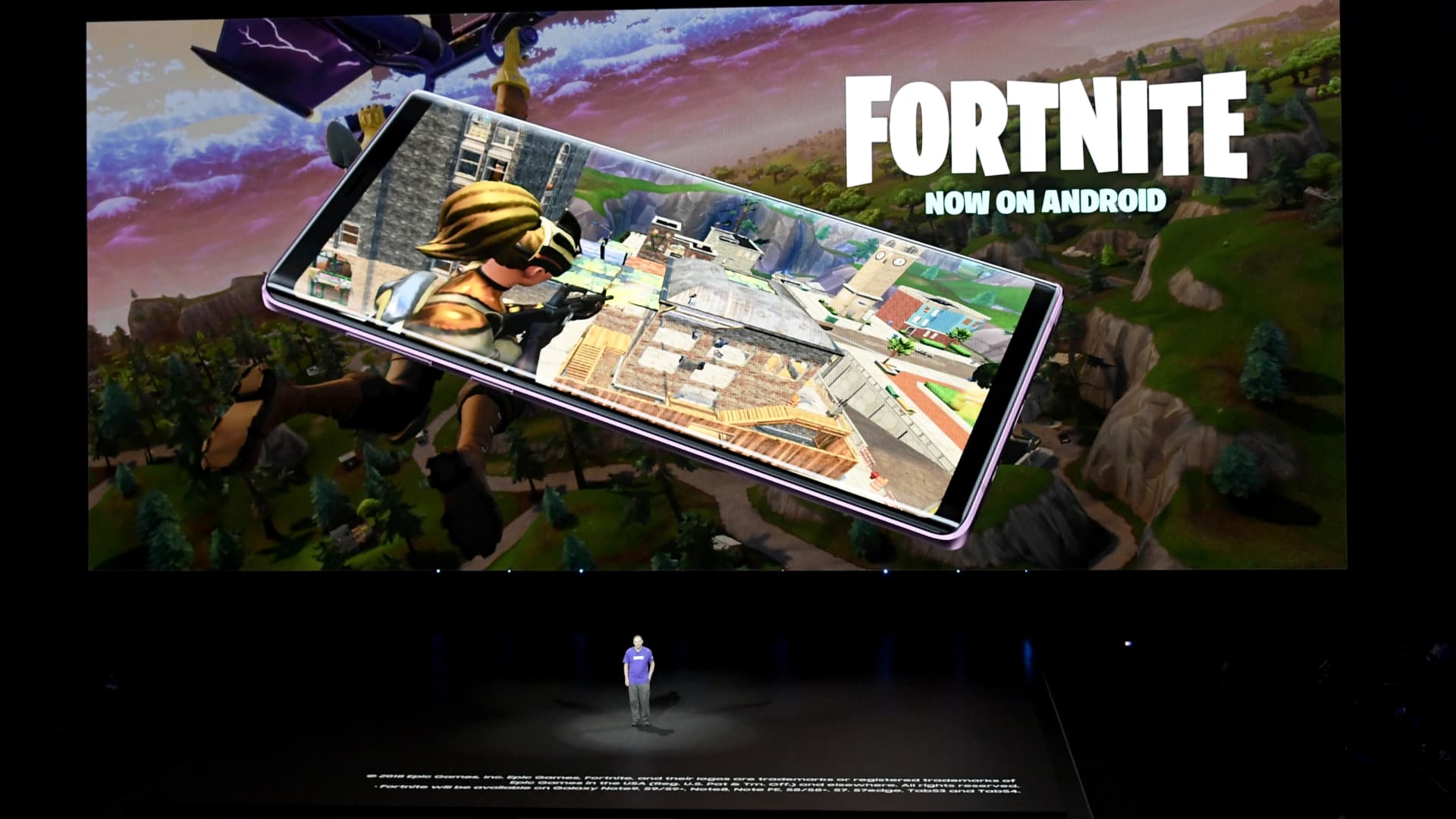 Epic Games CEO Tim Sweeney speaks onstage during Samsung Unpacked New York City at the Barclays Center in Brooklyn, New York, on Aug. 9, 2018.
