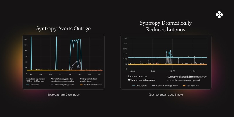 What they use Syntropy for is specifically latency improvement and outage avoidance between their data centers. They ran a proof of concept with us where they installed our software in two different data centers, and they found that we could help them avoid outages when there was a downstream provider that had some kind of congestion, or as Dom described, some kind of provider to provider relationship problem.