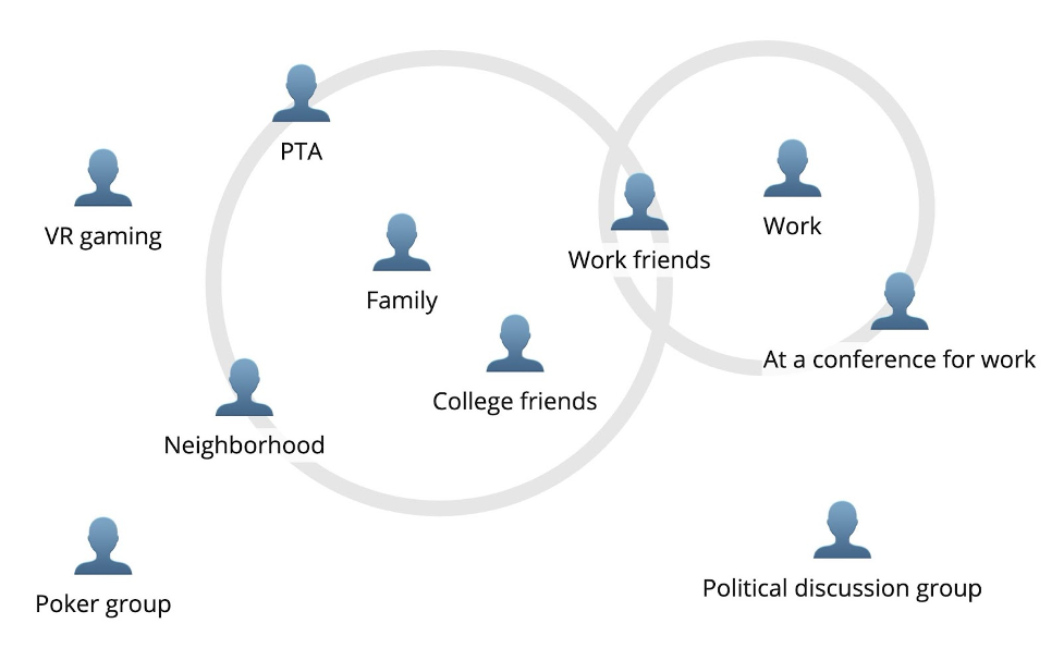 As we consider identities in the metaverse extensions to the identities we have in the real world, we need to understand that we build pseudo-identities for different interactions. My pseudo-identities for a family, work, my neighborhood, PTA, school friends, etc. all overlap to some extent. These are situations, contexts, realms, or worlds that I am part of, and that extend to the web and metaverse.