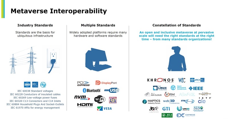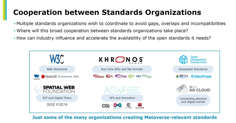 Trevett pointed to the creation of XR standards that arrived just in time for the creation of the latest generation of VR headsets. But he noted that the metaverse standards will likely be addressed with a sense of urgency.