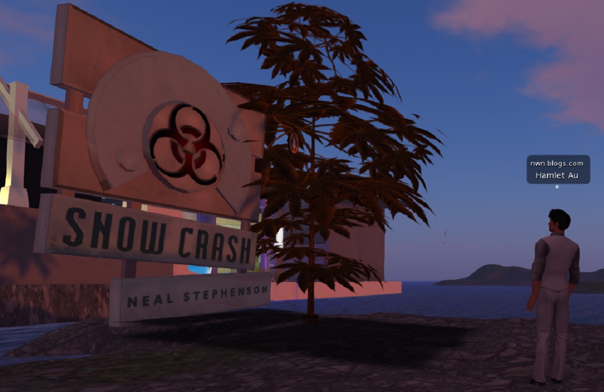 Au: Yeah, yeah. Really, when I started as a journalist in Central Life, that was 2003. My first visit to the Linden Labs office in San Francisco, I saw Snow Crash prominently there in the company book library. It was very much a reference guide to what the developers were doing in Second Life. I started the book the very moment after Snow Crash came out. Developers were trying to build something like it. Up to and including Neal Stephenson, actually. Some of this is lost in time, but apparently he was trying to build the metaverse himself in 1993, almost immediately after the book came out.