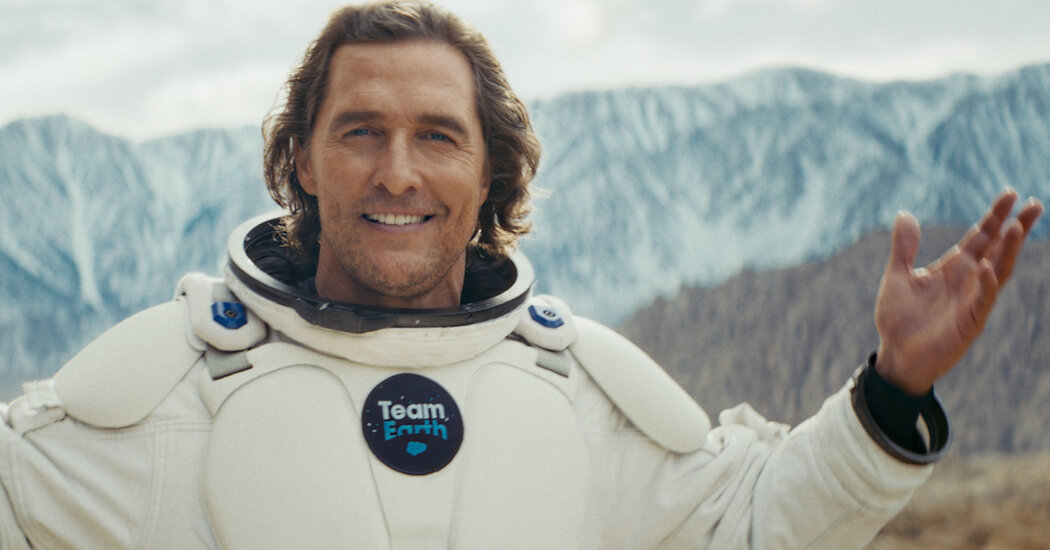 The software giant Salesforce tapped Matthew McConaughey to propose an alternative to the metaverse: supporting the real world. Titled “#TeamEarth,” the company’s second Super Bowl ad shows the actor drifting in a hot-air balloon over the San Francisco Bay Area as he counters, without naming them, the Meta chief executive Mark Zuckerberg and the SpaceX chief executive Elon Musk.