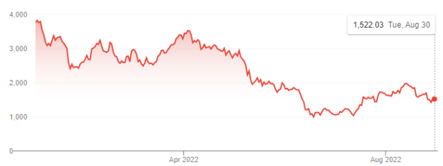 Bitcoin is seen as a bellwether for cryptocurrency as a whole, and the original digital cash has dropped in value by more than half since the start of 2022. A single Bitcoin was valued at more than $60,000 in late 2021, and now it struggles to remain above $20,000. Ethereum, which is often used to buy and sell NFTs, has seen a similarly precipitous drop from almost $5,000 per ETH to about $1,500 at the end of August.