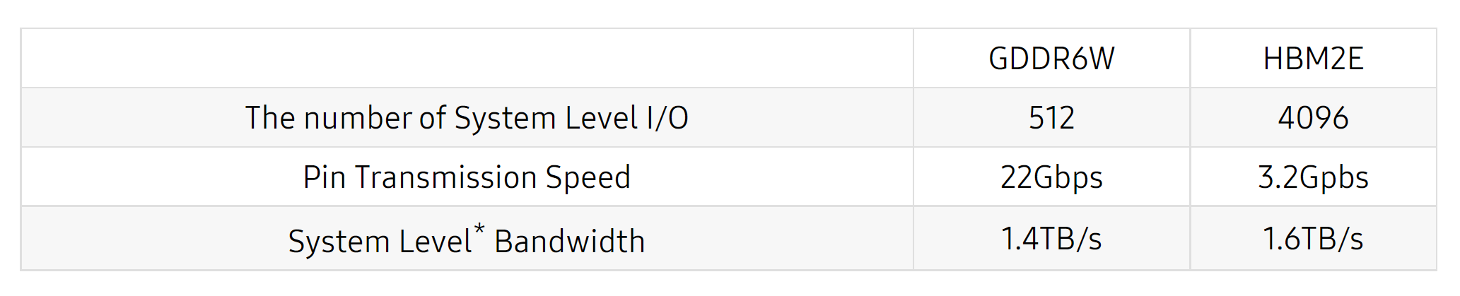 In context: As manufacturers continue to squeeze every last drop of performance out of current GDDR6 and GDDR6X memory modules, Samsung has announced a new and improved entry to the family — GDDR6W. Samsung claims that GDDR6W can compete with HBM2’s bandwidth and speeds.