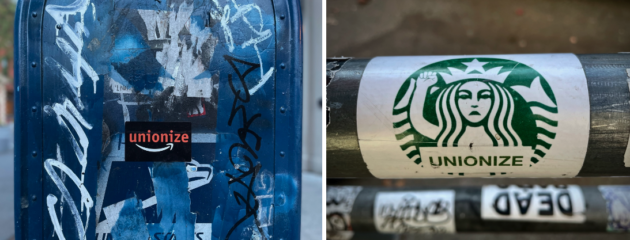 Two of Seattle’s biggest and best-known brands, Amazon and Starbucks, faced evolving workforce pressures as unionization efforts gained steam at the companies in 2022. Street artists in Seattle, never at a loss for words when it comes to tech or worker rights, took notice and stuck it to the e-commerce and coffee giants. Read more.