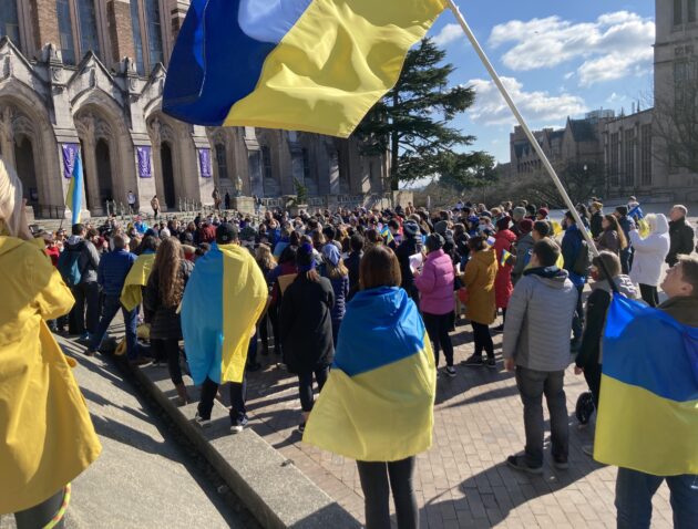 As war raged in Ukraine following the invasion by Russian forces, protesters rallied at the University of Washington in Seattle in February. With disinformation and Russian propaganda flooding social media, information experts provided advice about how to avoid propagating false narratives. Read more.