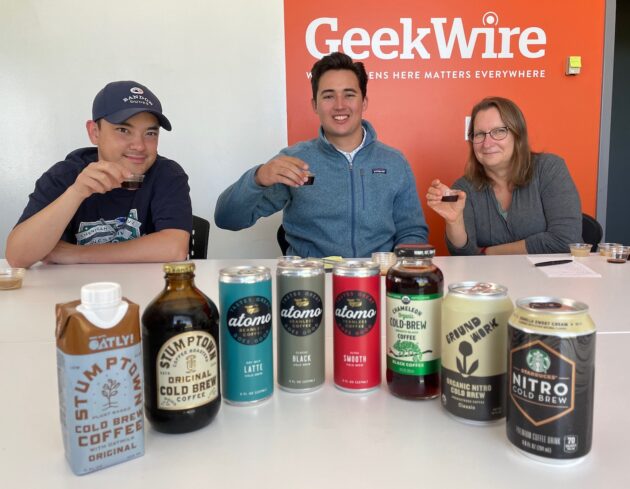 In a blind and not-that-scientific taste test, a trio of GeekWire staffers (above from left: Managing Editor Taylor Soper, intern Nate Bek, and reporter Charlotte Schubert) took on the tough task of slugging back eight varieties of cold brew coffee in the middle of the afternoon to see if one Seattle startup was especially buzzworthy. Read more.