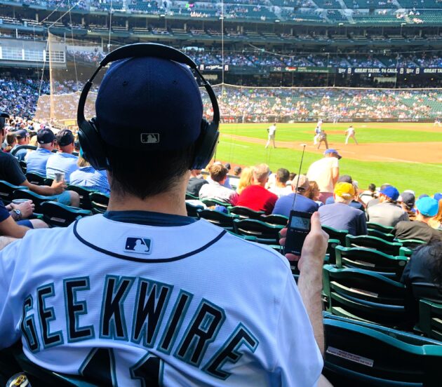 GeekWire co-founder Todd Bishop, above, was among those with Seattle Mariners fever this season as the team finally(!) returned to the playoffs. But he also had a fever for talking technology at the ballpark, including which was the best way for listening to play-by-play audio from the stands. Read more.