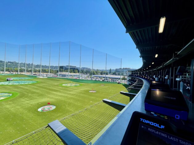 The view from a top-level bay at Topgolf in Renton, Wash., where the high-tech golf and gaming venue opened south of Seattle this summer. The sprawling new sports and entertainment venue is the company’s 78th location and first in Washington state, and golfers of all skill levels streamed into the place in the midst of a heat wave to smack golf balls, play games, eat, drink and take in the atmosphere. Read more.
