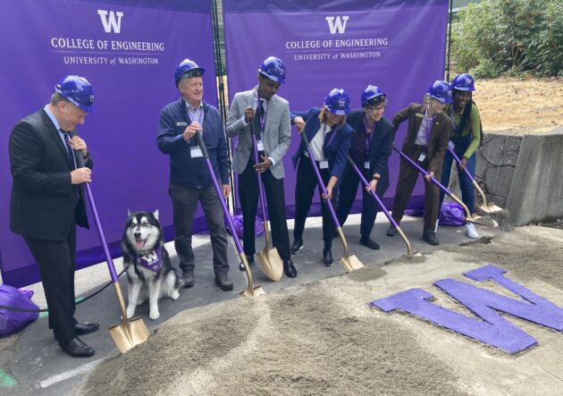 University of Washington president Ana Mari Cauce, third from right, joins UW engineering students and others — including Dubs the mascot — to break ground on the UW’s new interdisciplinary engineering building in September. The $102 million project is being supported with funds from Boeing, Amazon T-Mobile and others. Read more.