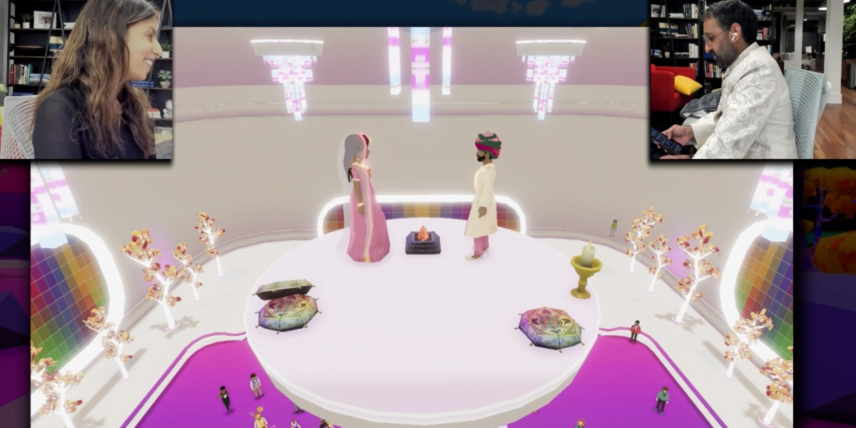If you look past the splashy branding—a trade-off some couples are willing to make for corporate help building and customizing a digital platform—virtual weddings let you do things you can’t in normal ones. For example, Mohnot rode into the ceremony in avatar form atop an elephant for his baraat, a pre-wedding procession for the groom. It’s a fun touch that would be far harder to arrange for an in-person party, especially in San Francisco, where they live.
