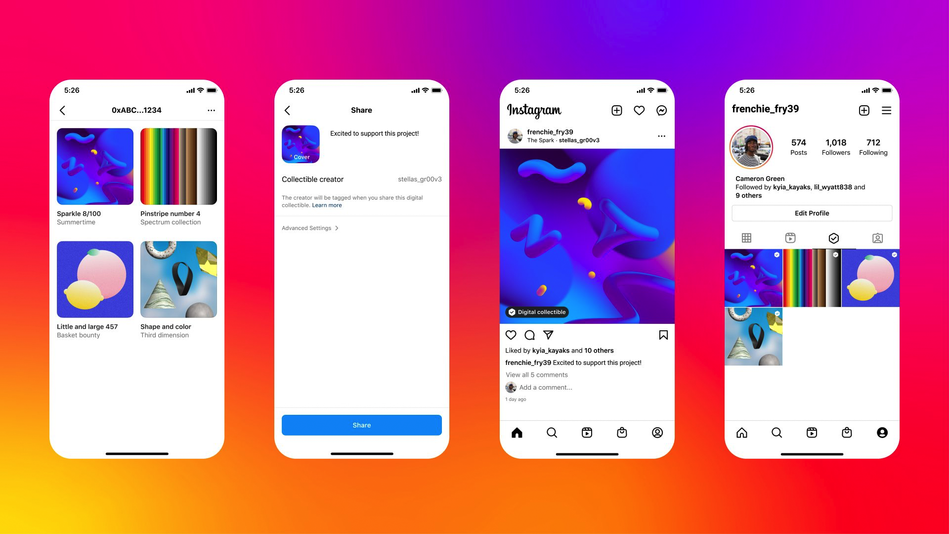 This week we’re beginning to test digital collectibles with a handful of US creators and collectors who will be able to share NFTs on Instagram. There will be no fees associated with posting or sharing a digital collectible on IG.