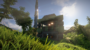You may think this little structure in the foreground took a couple of minutes to build. But no – I spent almost half an hour trying to work out the terraforming mechanics, tree placement and the odd floating wall pillars that kept appearing (seen below).