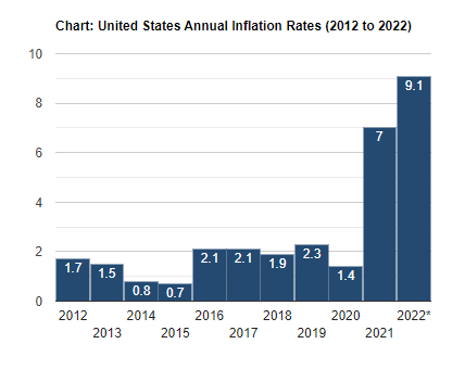 Analysts have been forecasting the crypto winter, and it has come. But no analyst, including me, could forecast the several factors that made the crash so sudden and severe. Europe is embroiled in an unpredictable war that threatens its resource supply. Sanctions imposed on Russia have impacted not only Europe but the world. The inflation rate in the USA surged to 8.6% in May 2022, making the largest 12-month increase since December 1981, but even that record was smashed in short order. In June 2022, the inflation rate surged to 9.1%, the largest increase since November 1981, with the prices for food raising to 10.4%.